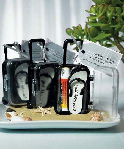 Varied as what you can choose to pack, these suitcase trolleys are equally as versatile in their use. The perfect favor for a destination wedding, bon voyage party, or a corporate getaway.