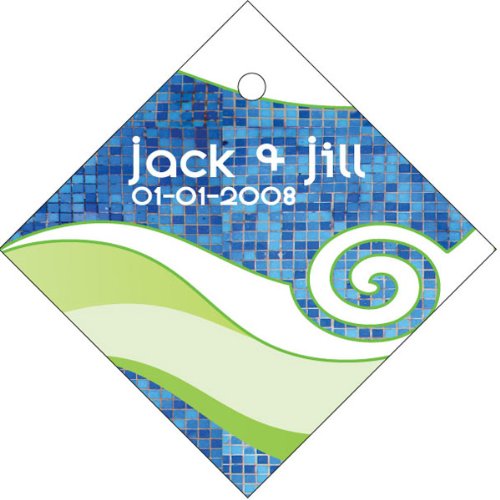 The Detailed Description of Baby Keepsake: Green Tile Wave Design Diamond Shaped Personalized Thank You Tags - Se (Set of 36)