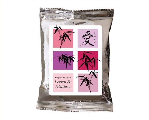 This frothy, iced cappuccino drink is sure to be a rich and refreshing guest pleaser. The single serving pouches are sealed in elegant silver pouches which can be personalized with your names and event date along with your choice of one of our premium designs from our extensive design library. You are sure to find a design that perfectly complements your event theme and style. Package Contents: single serving 1 oz package of cappuccino powder Package Size: 4 wide x 6.5 tall Instructions: Just add milk or water and pour over ice. Note: Tag or Sticker does not come attached to item. ... This unique & elegant item is part of our exclusive Wedding Favor and Bridal - Baby Shower collection. They make for a great and unique gift for your wedding reception, bridal shower, bay shower or any other special event.