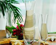 Just as the sand from the three vases are combined, never to be separated again, so shall your love be! Set includes one vase that can displays your name and wedding date and three smaller vases to hold the colored sand during the wedding. Features and facts: Set includes one large vase and three smaller pouring vases Large vase can be engraved with two lines of type (max. 20 characters per line) at no additional cost Vases measure 10 x 2 (large) and 6 x 1 (small) Sand not included
