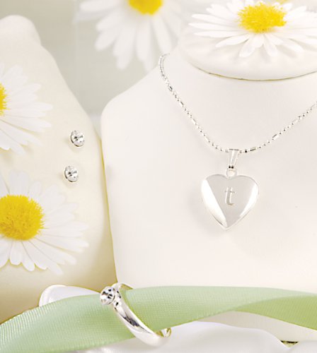 Our adorable Sparkling Heart Locket Jewelry Set is an excellent gift for all the young girls on your list. They are sure to feel like a grown up in this timeless, sterling silver-plated locket necklace which accommodates two small pictures. Set includes a locket necklace, pierced earrings, adjustable ring and a complimentary white satin purse embroidered with a first name. Available in silver only.Details:Size: Necklace measures 14 inches long.Materials: Sterling silver-plated metalPersonalization Options:The Sparkling Heart Locket Jewelry Set may be engraved on the locket with a single block initial, and the complimentary white satin purse may be embroidered with a block first name (max of 12 characters) in pink thread at No Additional Cost.