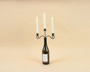 The old-world style of this elegant candelabra makes quite a statement. With charm and grace, you can transform any wine bottle into a masterpiece by simply placing the wrought iron design with three candle holders in the top of the bottle. Great for romantic dinners! Facts and features: Wrought iron design will coordinate with any dcor Measures 9 " wide Bottle and candles not included