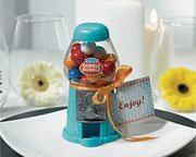 Add color and delight to your table dcor with these Mini Classic Gumball Dispensers! Your guests will love turning the crank to get the sweet Dubble Bubble gumball. The bottom and the cap of the 5" tall dispenser are turquoise, and the clear bowl holds a number of colorful gumballs. Sold in sets of 24.
