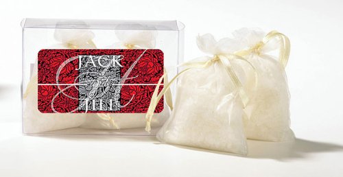 Our unique bath salts are made with the finest ingredients in order to cleanse your skin and provide it with a natural, healthy glow. Our salts are infused with a fresh linen scent to create a refreshing and relaxing environment. Our bath salts packaged in two beautiful organza bags with matching drawstrings. The bags are packaged in a clear PVC box to showcase the product. Elegant Black and White fleur-de-lis design with matching label personalization The personalization of your names and event date will be on a glossy label and applied to the top of the box. Scent : Fresh Linen Contents: 2, 45 gram bags of bath salts Size each bag: 2 L x 1 W x 2 3 4 H. Note: Tag or Sticker does not come attached to item. ... This unique & elegant item is part of our exclusive Wedding Favor and Bridal - Baby Shower collection. They make for a great and unique gift for your wedding reception, bridal shower, bay shower or any other special event.