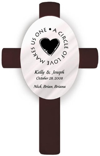 Our personalized wedding crosses are an ideal way to commemorate such a special occasion. Choose from a variety of designs and inscriptions - including scriptural passages and traditional and contemporary motifs. These elegant personalized gifts will serve as a lasting memento of a once-in-a-lifetime event. Select image and names and date for personalization. Cross measures 11 x 7 x 3 4. Personalize it with Bride and Groom Names, Date Inscription and Children`s Names ... This unique & elegant item is part of our exclusive Wedding Favor and Bridal - Baby Shower collection. They make for a great and unique gift for your wedding reception, bridal shower, bay shower or any other special event.