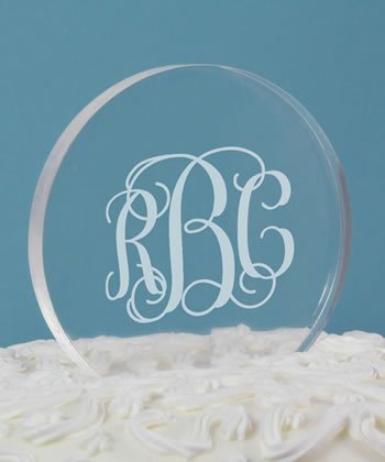 Personalized Round Cake Topper Clear Acrylic Round Cake Topper Measures 4" by 4" by .5" Personalize with Your Names, Block Initial or Script Monogram Make a unique statement with your wedding cake and our personalized round cake topper. The crystal clear design provides a timeless elegance to this original piece of artwork. Measuring 4" by 4" and 1.2" thick, this topper is unlike other cake toppers in that it can easily be incorporated into your everyday home dcor for lasting memories long after your special day. Choose from three possible designs that include a double heart design with your first names and wedding date, a single block initial or script monogram initials. A beautiful addition to your wedding dcor and a lovely reminder of the love you share, the personalized round cake topper will be a wonderful addition to your special day.