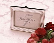 Elegant shiny silver groove frames are a very classy and practical wedding favor as they can be used to direct guests to their tables as place cards and later as a frame for the newlyweds. These silver groove frames hold a 2" x 3" card or photo. Each card or photo is secured by a glass pane and the back of the frame is black velvet.