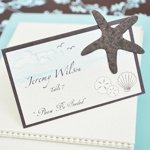 These stylish beach themed place cards have an eco-friendly secret, they are plantable! Part of Event Blossom's Please be Seeded line, these decorative starfish design place cards double as a wedding favor and place card all in one! Each place card printed with a relaxing beach scene also has a brown seed paper starfish attached at the top that guests can easily remove and plant. Instructions on how to plant and a list of flowers are beautifully printed on the back. Each card is also cleverly printed with the phrase "Please be Seeded", sure to spark up some good conversation among wedding guests!