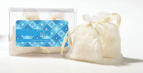 Our unique bath salts are made with the finest ingredients in order to cleanse your skin and provide it with a natural, healthy glow. Our salts are infused with a fresh linen scent to create a refreshing and relaxing environment. Our bath salts packaged in two beautiful organza bags with matching drawstrings. The bags are packaged in a clear PVC box to showcase the product. Elegant Black and White fleur-de-lis design with matching label personalization The personalization of your names and event date will be on a glossy label and applied to the top of the box. Scent : Fresh Linen Contents: 2, 45 gram bags of bath salts Size each bag: 2 L x 1 W x 2 3 4 H. Note: Tag or Sticker does not come attached to item. ... This unique & elegant item is part of our exclusive Wedding Favor and Bridal - Baby Shower collection. They make for a great and unique gift for your wedding reception, bridal shower, bay shower or any other special event.