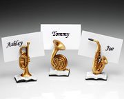 The right favor is "instrumental' in creating a lovely wedding, and these three horns will surely get your guests' attention. The antique-gold-finish saxaphone, French horn and trumpet hold place cards or photos. Each favor rests on a book of sheet music and measures approximately 3 " x 1 5/8".