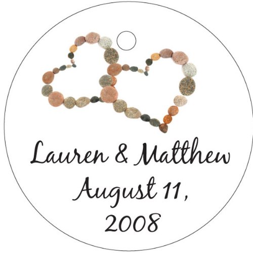 The Detailed Description of Wedding Favors Double Heart Pebble Design Circle Shaped Personalized Thank You Tags - (Set of 60)
