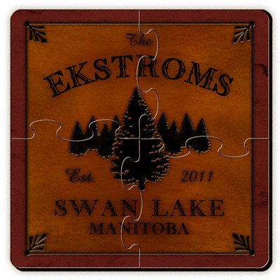 Add some whimsy to your summer getaway with our entertaining Cabin Series Coaster Puzzles. Perfect for the cabin on the lake or ideal for the outdoor lover to use in their home year-round, the wood-toned coasters are available in eight designs and feature name, location, and established date as well as a choice of images. These unique puzzles separate to become four handy coasters. Perfect for party or everyday use, our coaster puzzles include your choice of personalization. Great personalized gift for the executive or retiree Measures 7 1 2 x 7 1 2 x 1 8. Personalized with Name, Location and year. ... This unique & elegant item is part of our exclusive Wedding Favor and Bridal - Baby Shower collection. They make for a great and unique gift for your wedding reception, bridal shower, bay shower or any other special event.