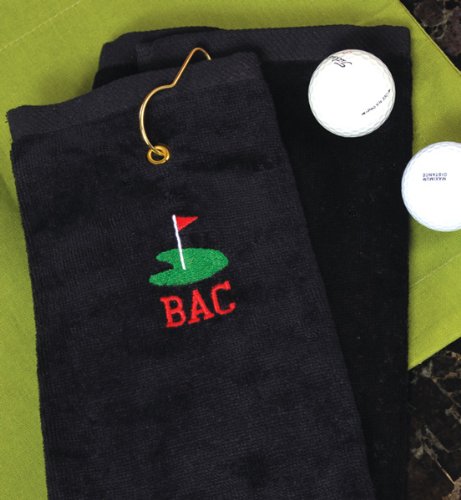 Wedding Favor - Bridal Shower Gift - Baby Shower Keepsake: Make every gift an ace with our Personalized Golf Towel Made with 100% cotton sheared velour terry, this towel is the ideal gift for all the golf lovers in your life. Each towel is decorated with a golf green design, embellished with green, white and red thread. A hole in one Details: Size: Measures 25" long by 15 1 2 inches wide. Materials: 100% cotton sheared velour terryEmbroidery Options: The Personalized Golf Towel may be embroidered under the golfing green design with up to three block initials at No Additional Cost.