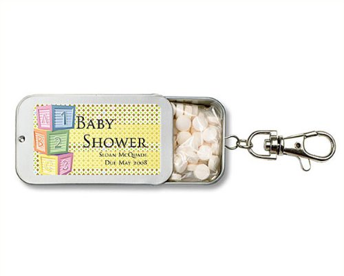 Wedding Favor - Bridal Shower Gift - Baby Shower Keepsake: This beautifully designed keychain mint tin makes the perfect favor ?" these flavorful mints are sure to leave your guests with fond memories of your event. The refreshing mints are packaged in a brushed tin container with a fun and practical key chain attachment along with a tin top that slides open to provide ready access to the mints.Further personalize your gifts with your names and event date along with your choice of one of our premium designs from our extensive design library. You are sure to find a design that perfectly complements your event theme and style. Measurements: 2.75 L x 1.5 W x 0.5 H Flavor: Cool Peppermint, Cinnamint, Refreshing Green Tea. Note: Tag or Sticker does not come attached to item.